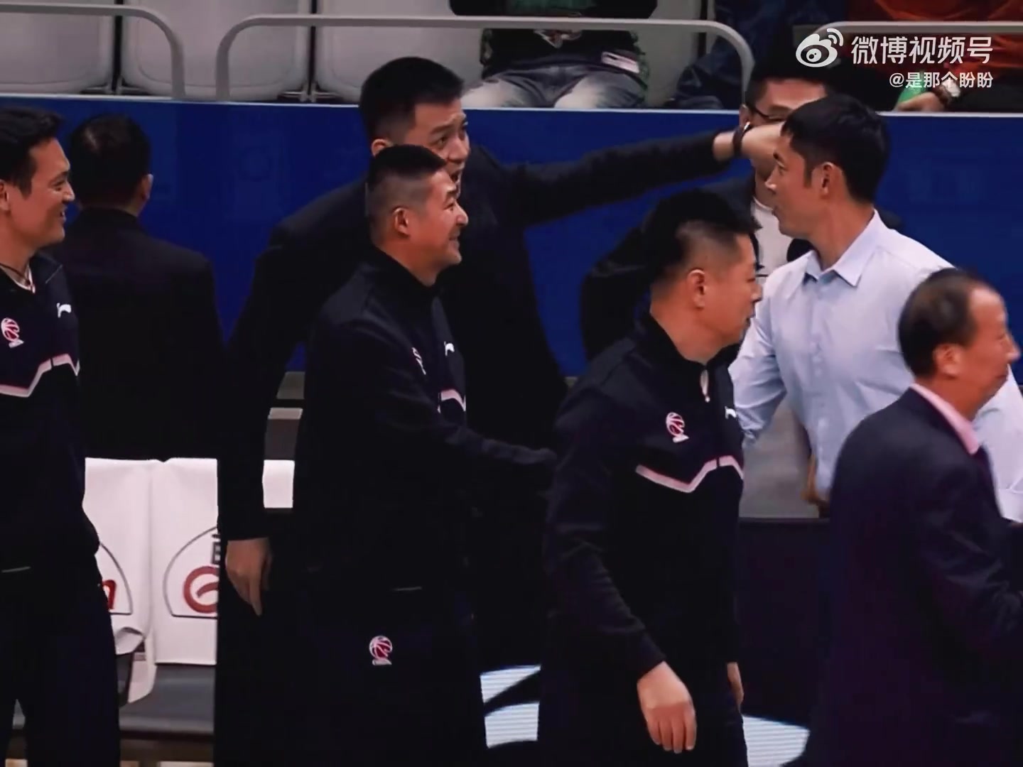 赛后,辽宁主帅杨鸣和老队友、天津主帅张庆鹏寒暄,并给后者整理衣领,张庆鹏也开玩笑回应。